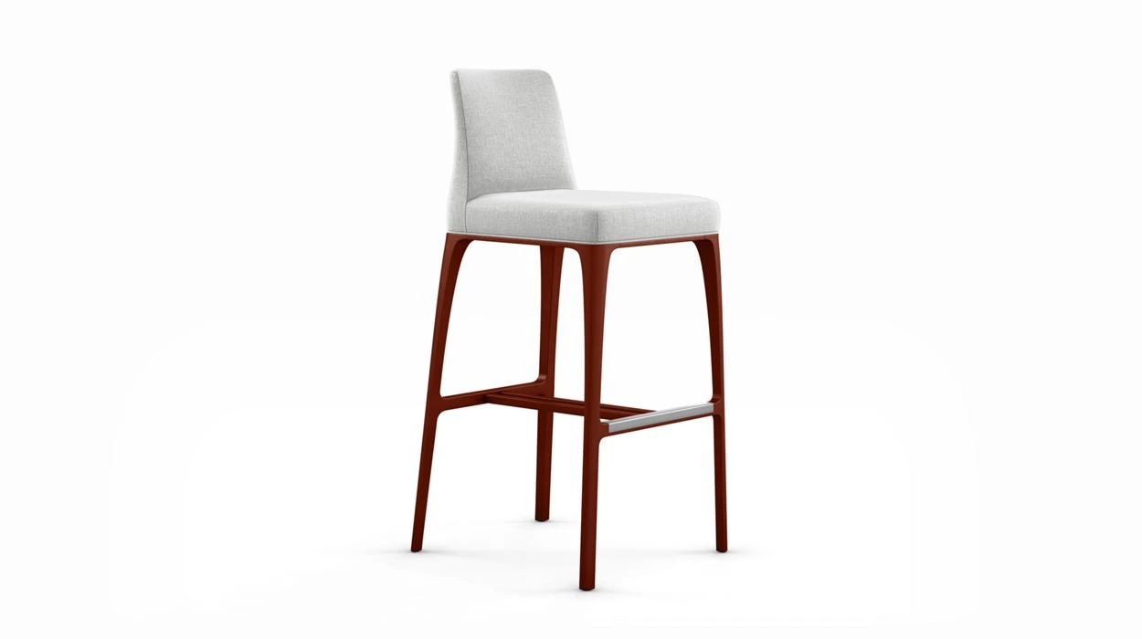 A gracious bar stool with a thin beech structure and a soft seat complimented by an elegantly curved back.