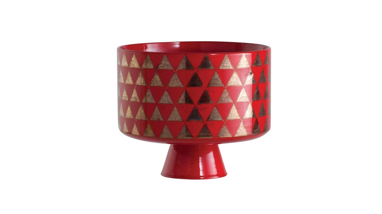 In earthenware, silice white clay, hand-turned. Enameling by several firings, colour Selenium Red.