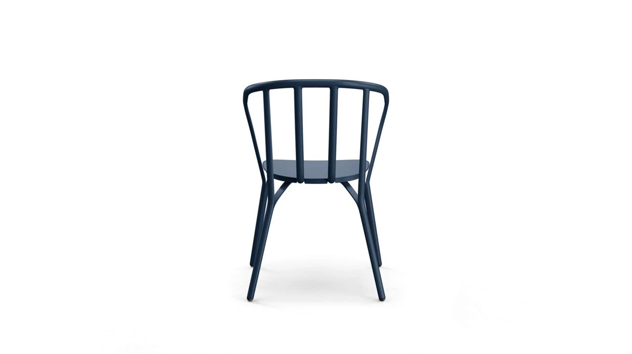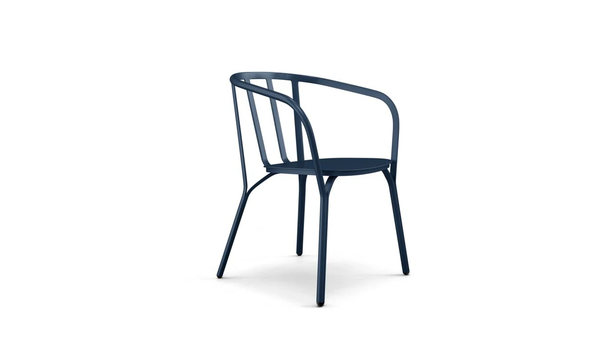 Dining armchair in lacquered aluminium tube and cast aluminium (3 colours available: white, Nuit blue, Anthracite grey).