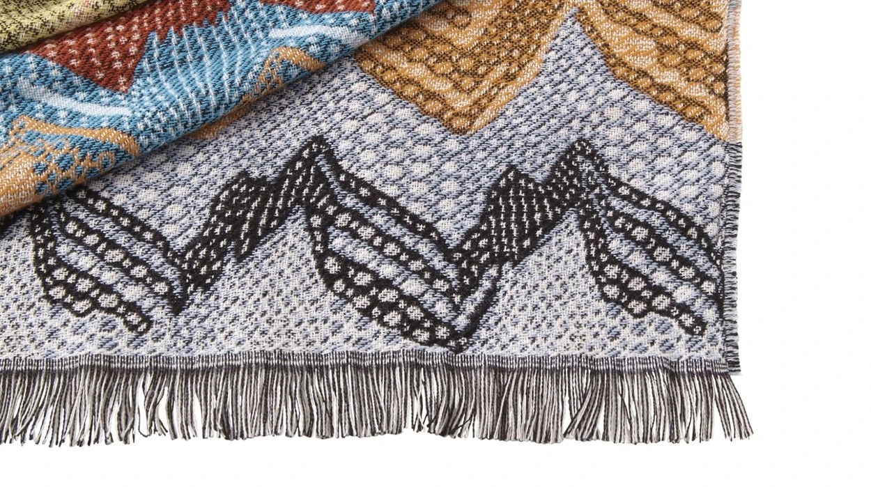 Plaid en tissage jacquard finition frangée. 100% laine.