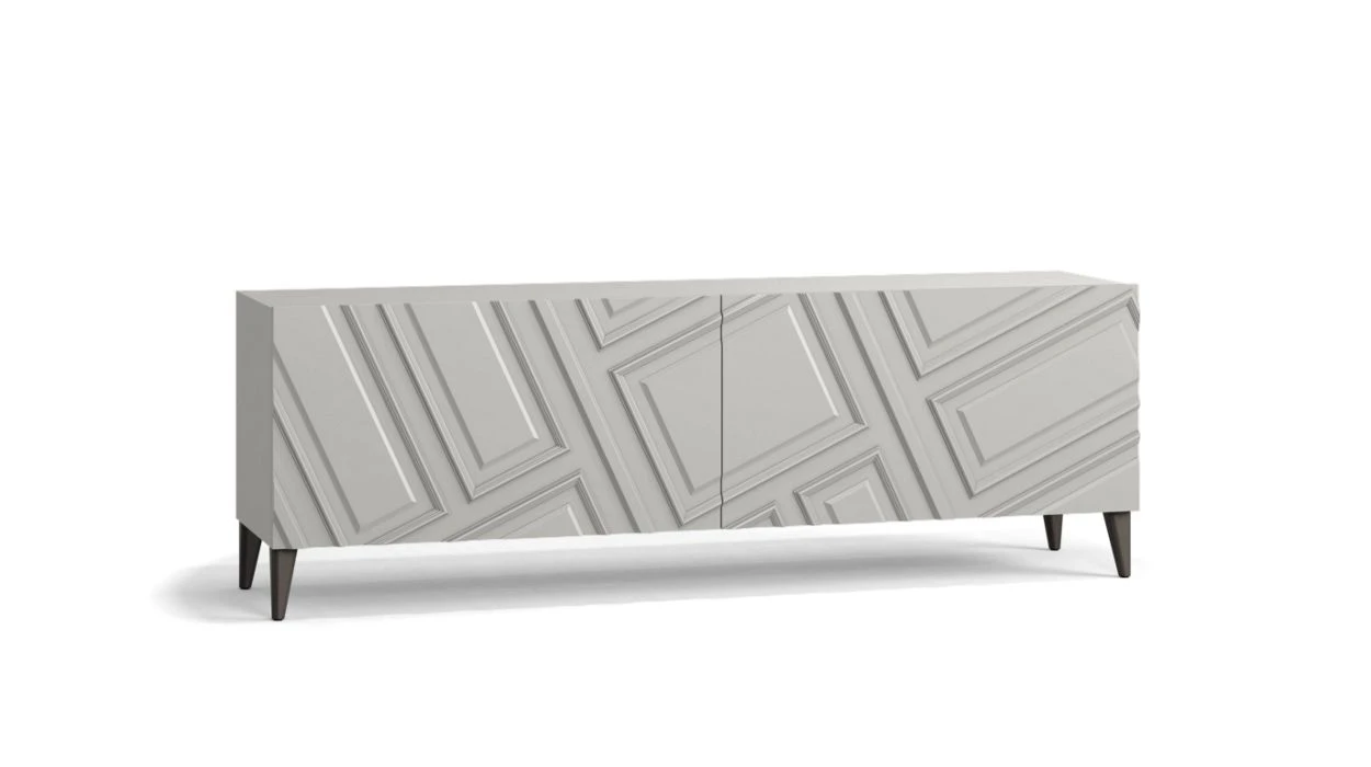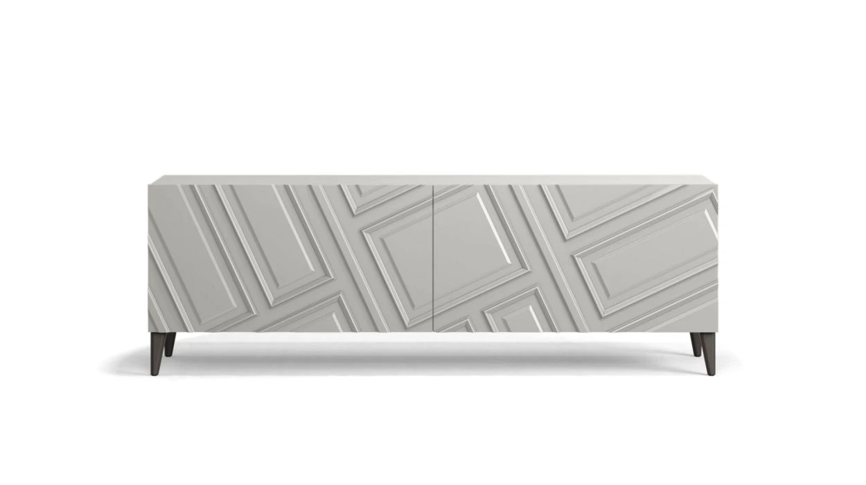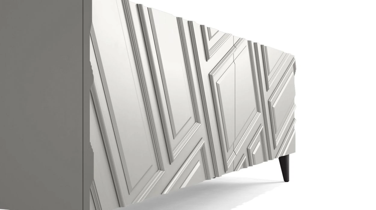 A collection of case goods inspired by Haussmannian architecture, reinterpreting its famous moldings: slanted, reversed, they are an offset interpretation of French classics. Designed by Bina Baitel.