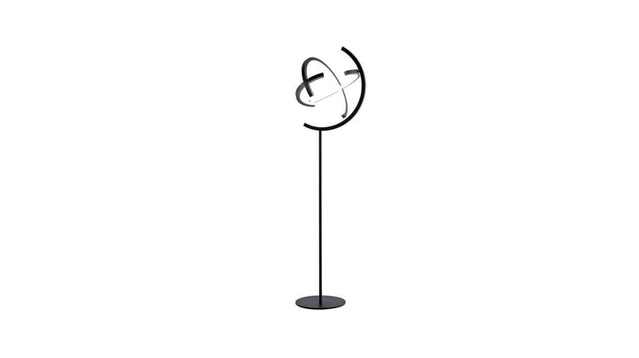 Straight floor lamp made of aluminum arches with black lacquer finish, and polycarbonate diffusers