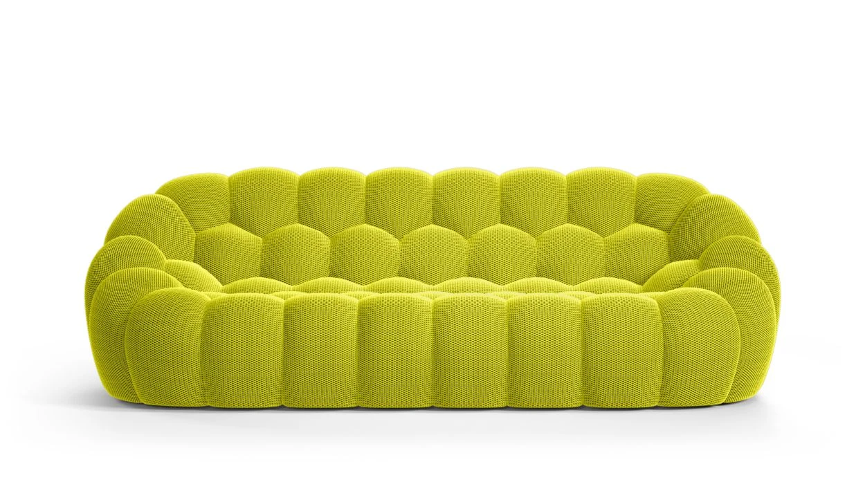 Created by Sacha Lakic, a designer with a passion for cutting-edge technology, Bubble expresses the balance between innovation, function and emotion. Inspired by natural and mineral forms and entirely handmade, its design required the development of specific stretch fabrics that perfectly fit its round shapes. With its unique style, the Bubble sofa, in straight or rounded version, is an iconic model in the Roche Bobois collection.