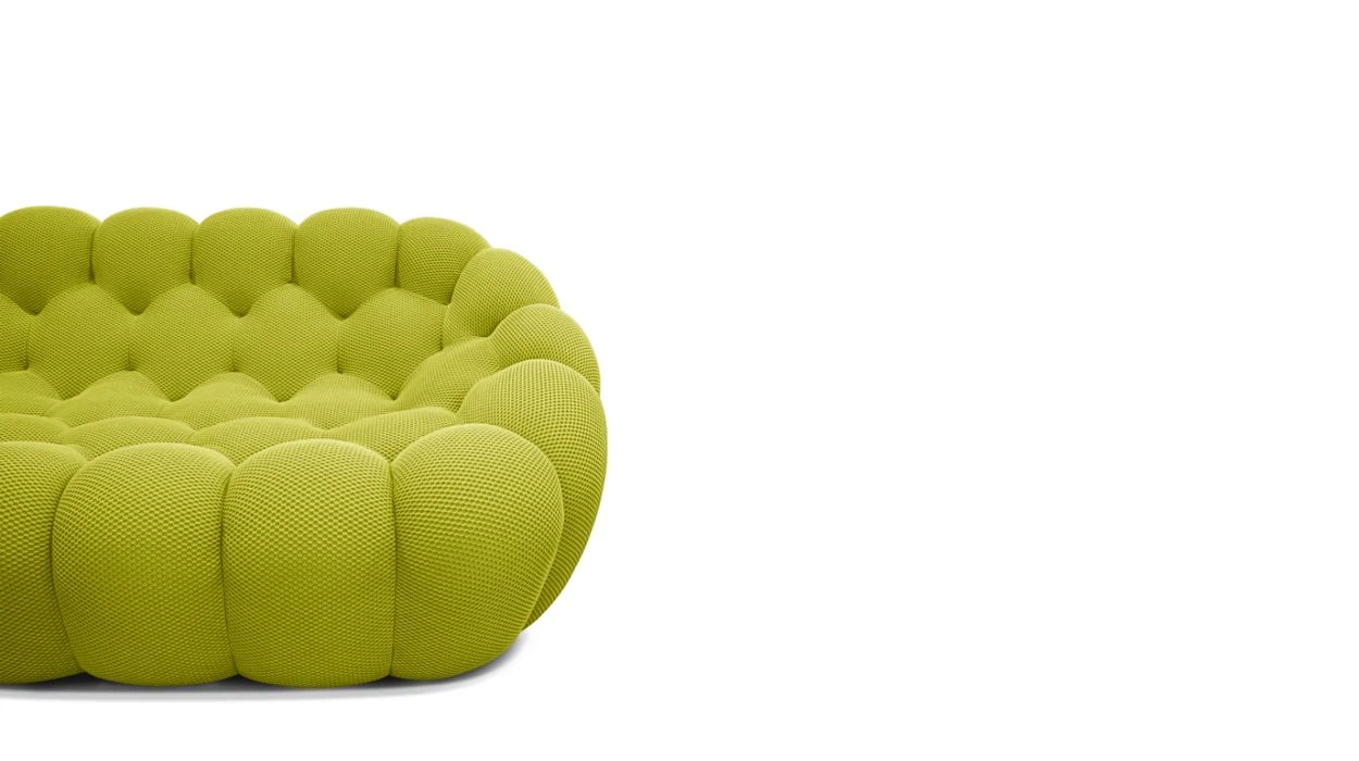 Created by Sacha Lakic, a designer with a passion for cutting-edge technology, Bubble expresses the balance between innovation, function and emotion. Inspired by natural and mineral forms and entirely handmade, its design required the development of specific stretch fabrics that perfectly fit its round shapes. With its unique style, the Bubble sofa, in straight or rounded version, is an iconic model in the Roche Bobois collection.
