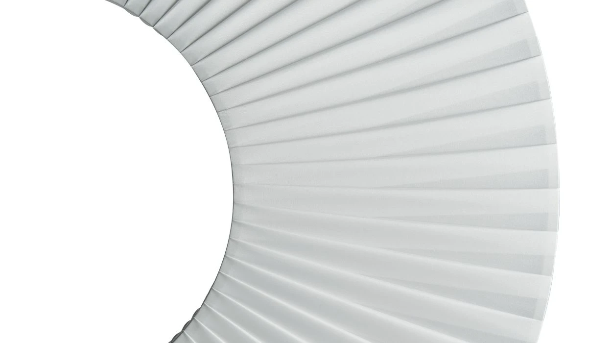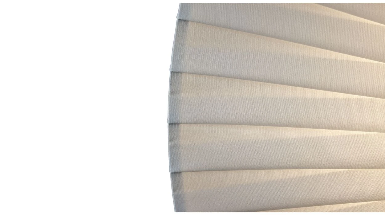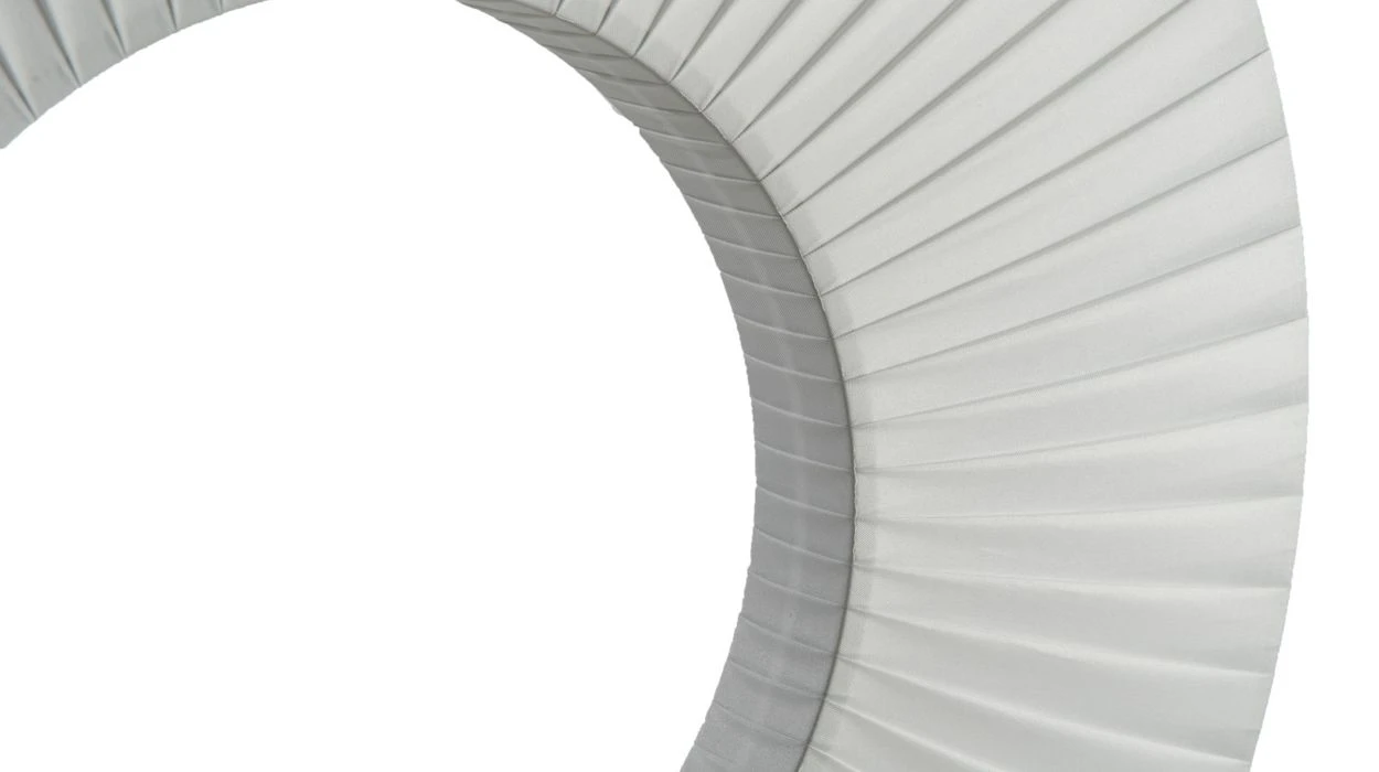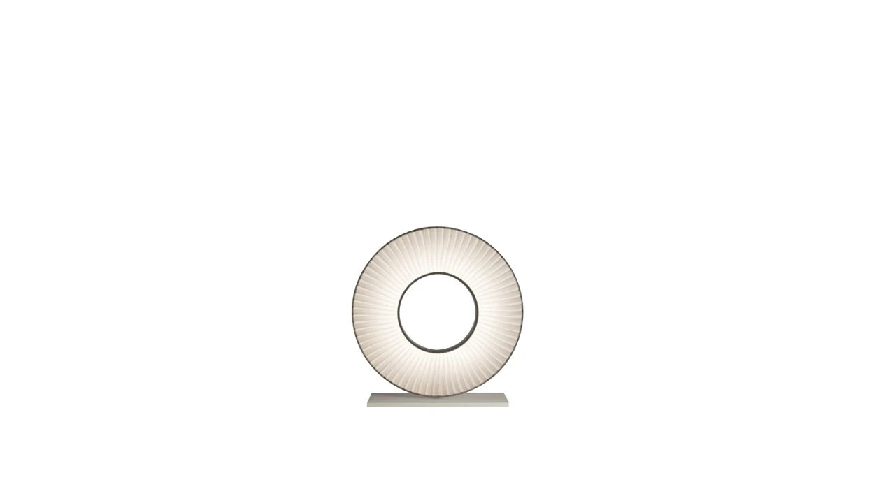 Table lamp with one pivoting ring in white ribbon folded by hand on base in white Fenix.