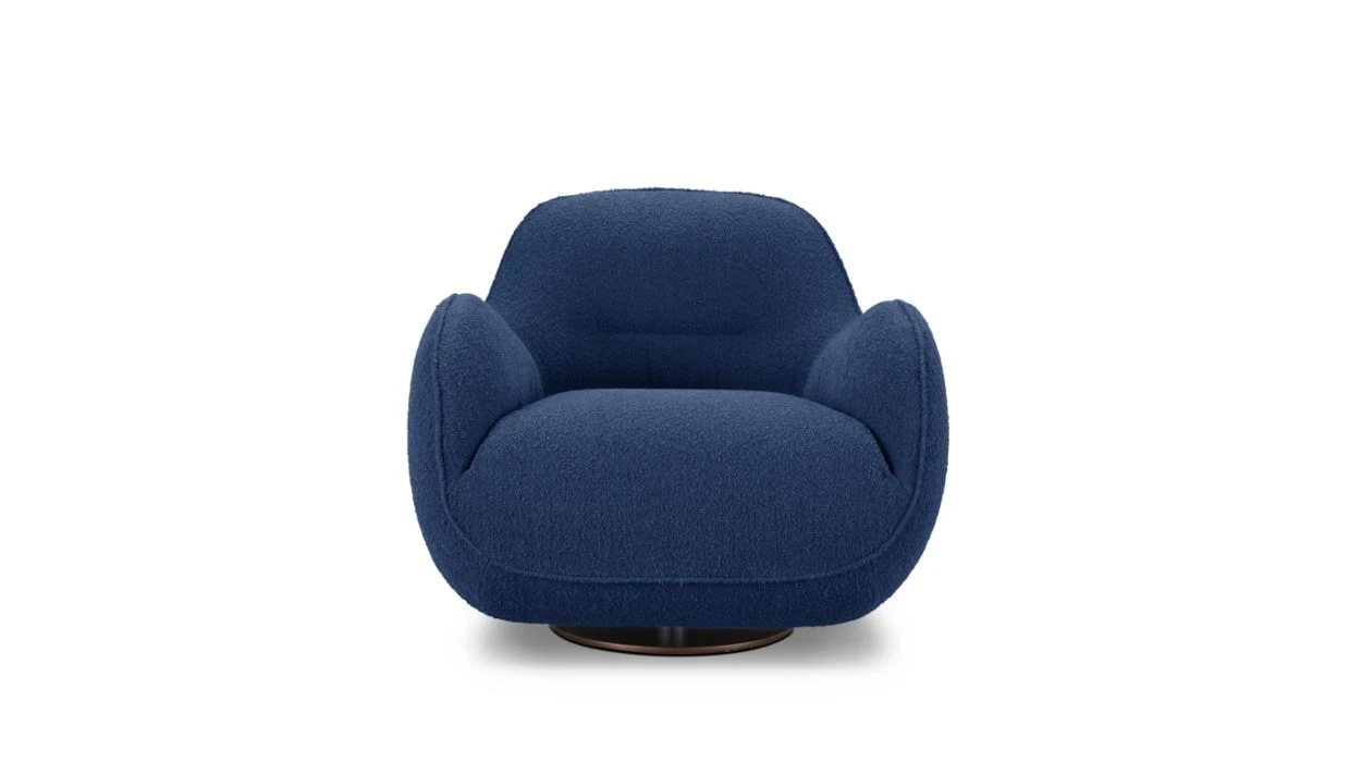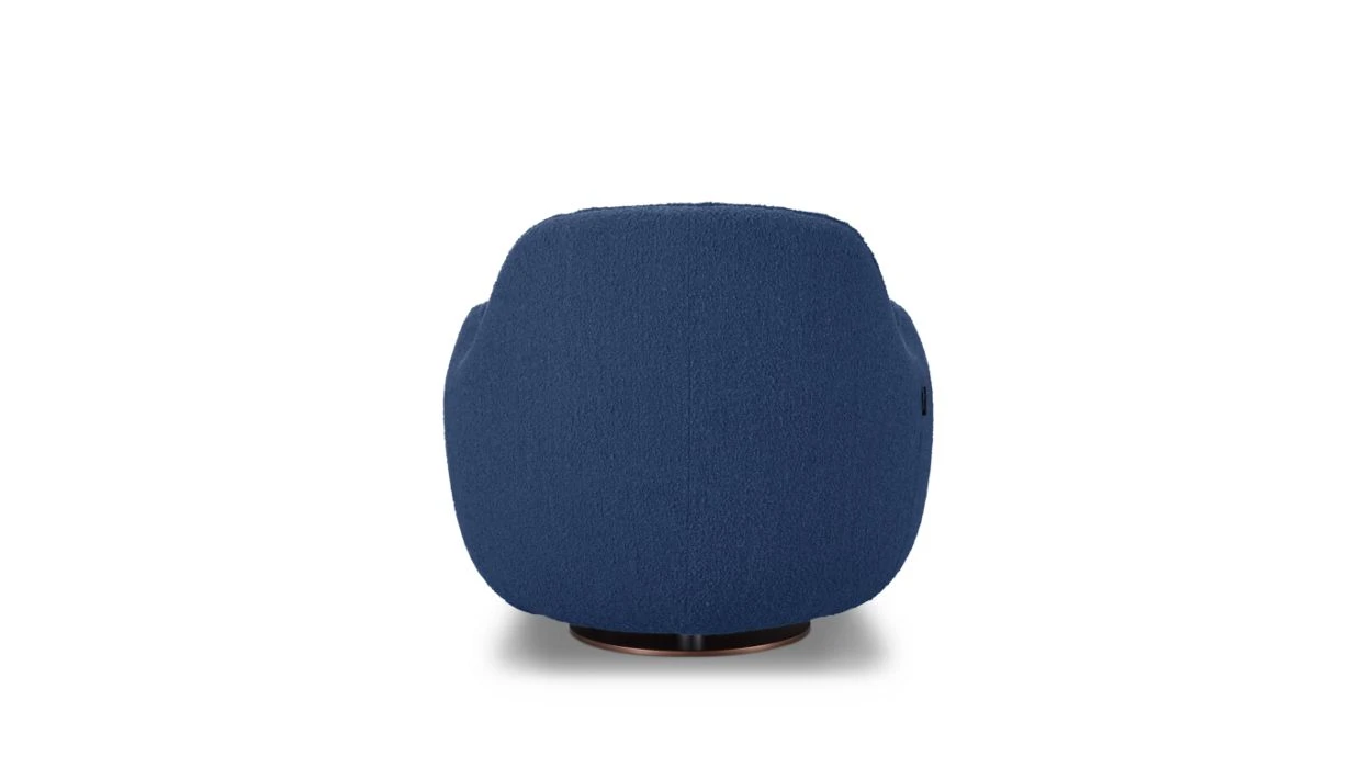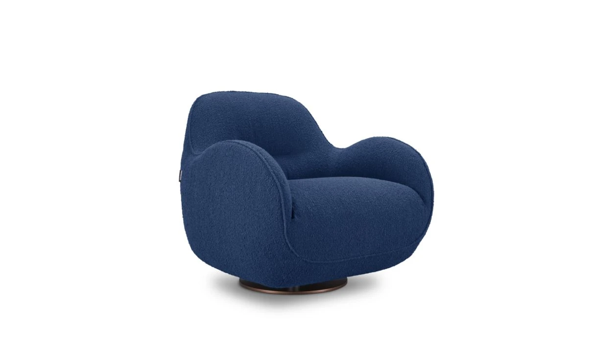 Upholstered in Ricochet fabric (56% acrylic, 15% polyester, 12% viscose, 11% cotton, 6% linen). Seat in tri-density polyurethane foam 35-37-25 kg/m³. Back in tri-density HR polyurethane foam 35-21-25 kg/m³. Structure in solid fir wood, pine plywood and particle board. Extra large HR elastic straps suspension. Metal base in bronze stain varnish finish.