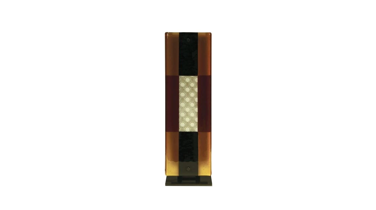 Table lamp with structure in black metal with satin finish, diffuser in fusing glass and metacrylate with satin finish.