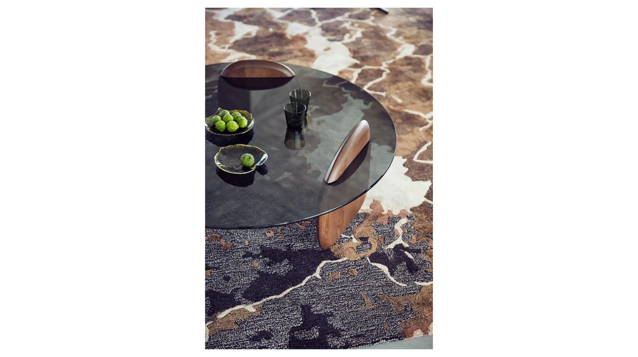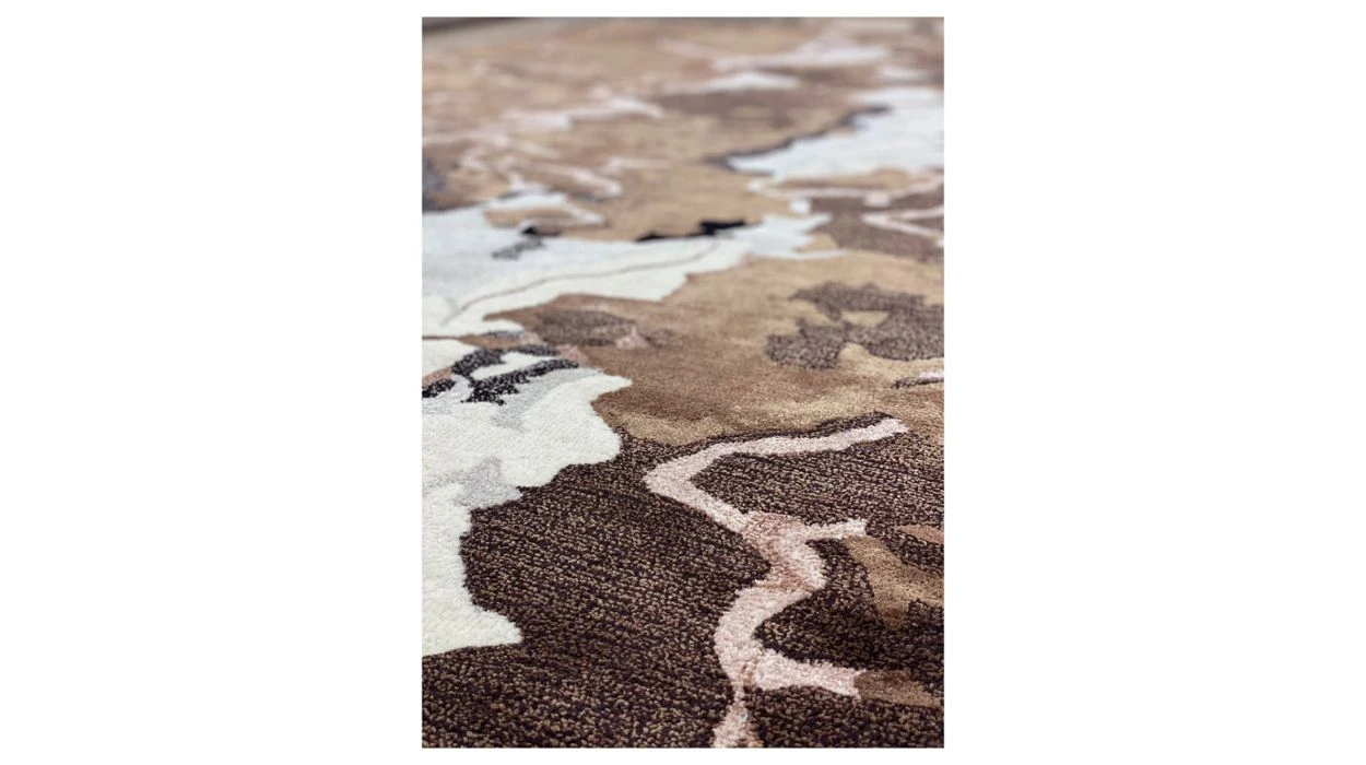 Hand-tufted rug in 70% New Zealand wool and 30% Tencel® representing a photo of the salt lake between Biskra and El Oued in Algeria.