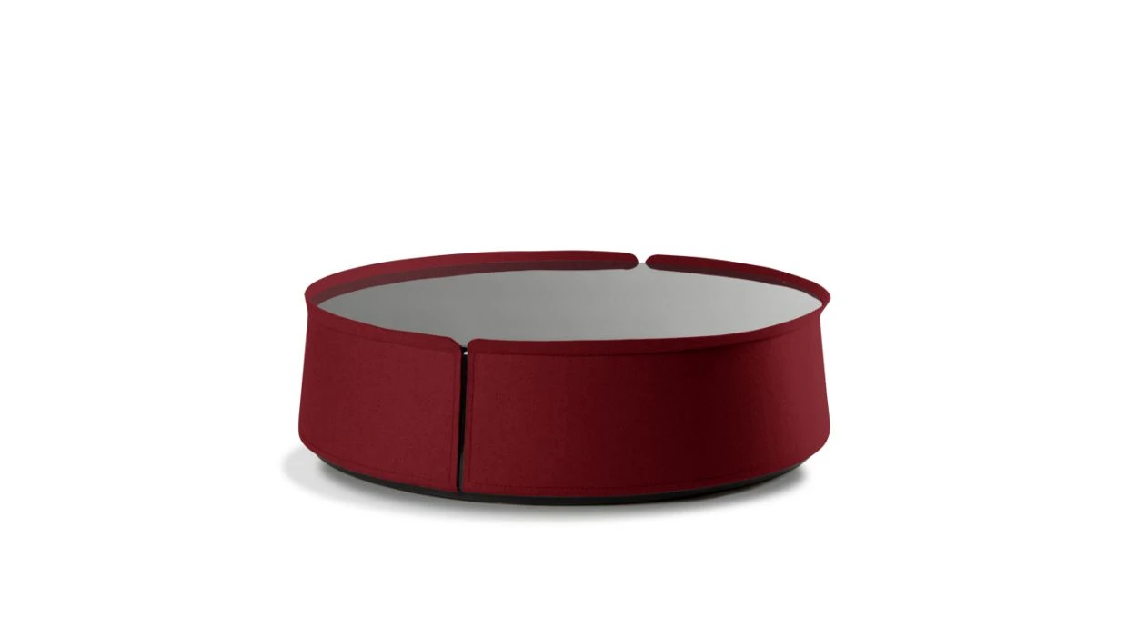 Cocktail table upholstered in natural wool felt, structure in moulded plywood and MDF