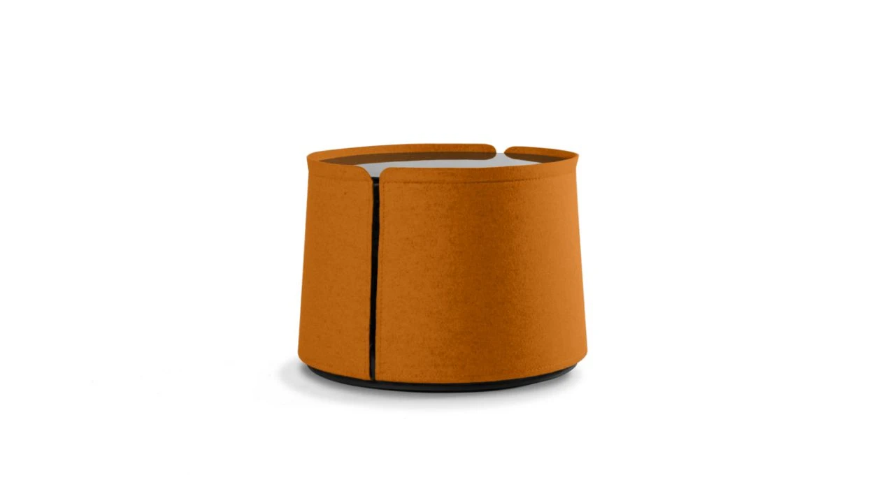 End table upholstered in natural wool felt, structure in moulded beech plywood and medium