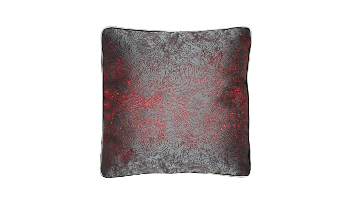Small square cushion with cover. Front in Skin fabric, col. Nectar 3440-03. Striped edge. Back in plain fabric, col. black.