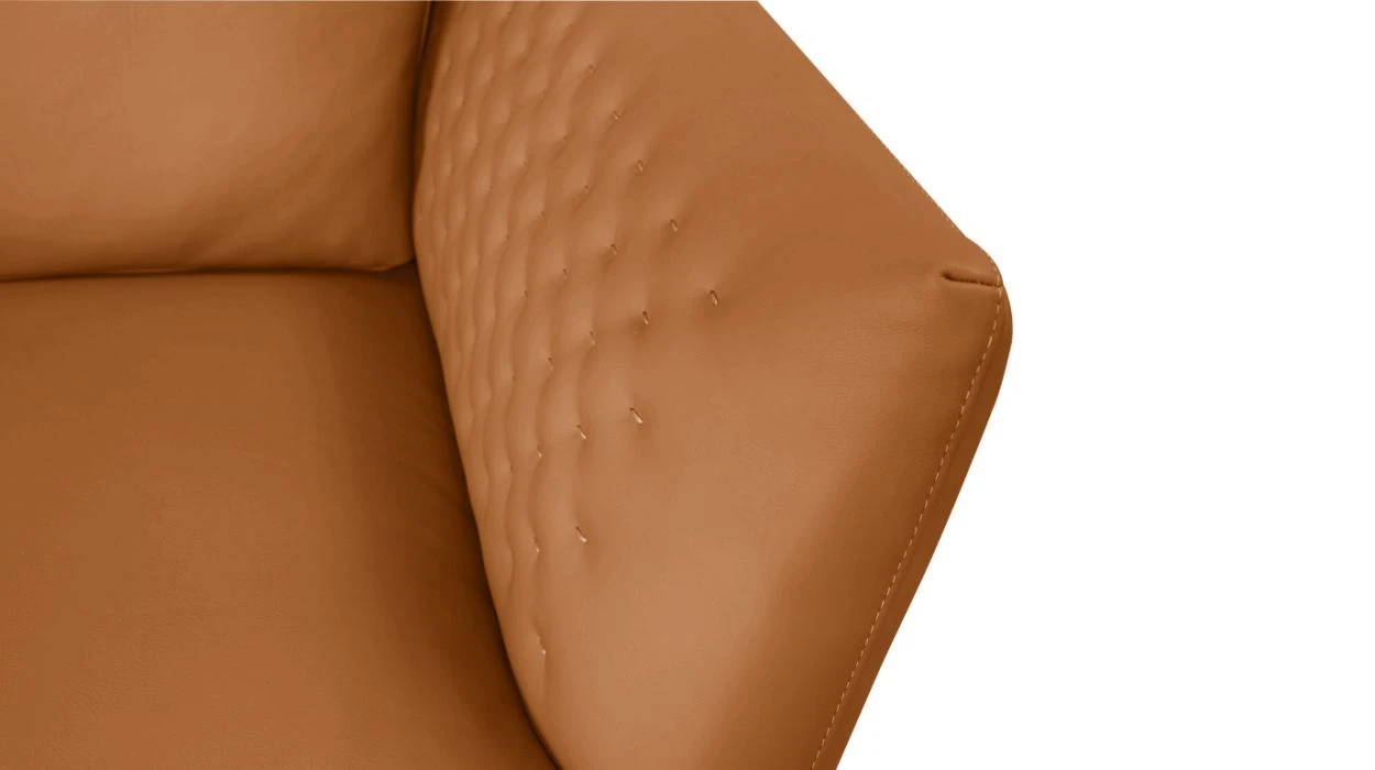 Seat cushions in foam 35M kg/m³. Back cushions in foam 25 kg/m³. Structure in solid pine wood and poplar particle board (CARB wood). Elastic straps cross webbing suspension. Metal base in matte bronze finish. Other dimensions available. Optional deco cushions.
