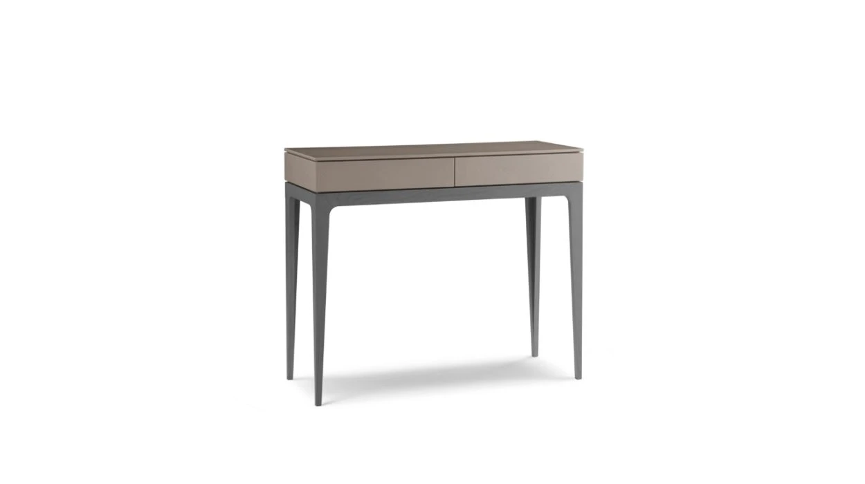 Console with 4 legs, top with 2 drawers with front in MDF with matte lacquer finish, legs in stained solid oak.