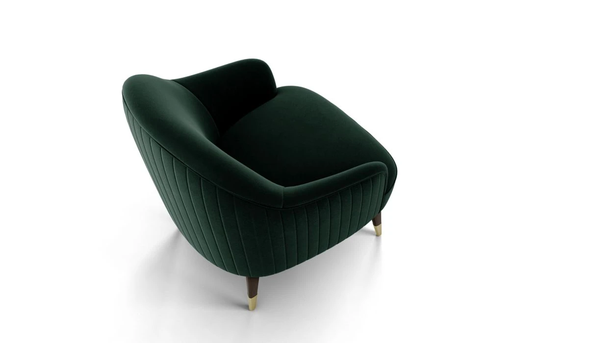 Upholstered in fabric. Seat cushion in foam 25AR/40E and batting. Back and armrest cushions foam 23E/25AR and batting. Structure in solid pine wood and poplar plywood.