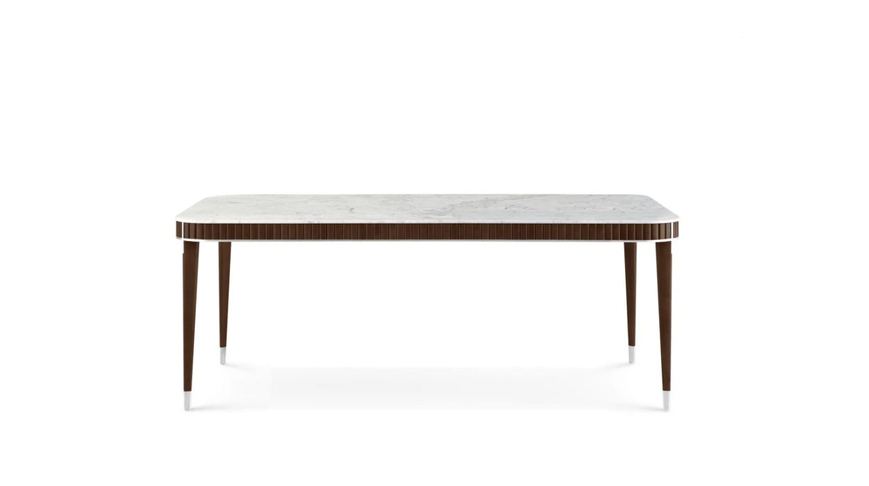 Structure in stained solid cherry wood. Top (5 finishes). Applications and feet in brushed brass.
