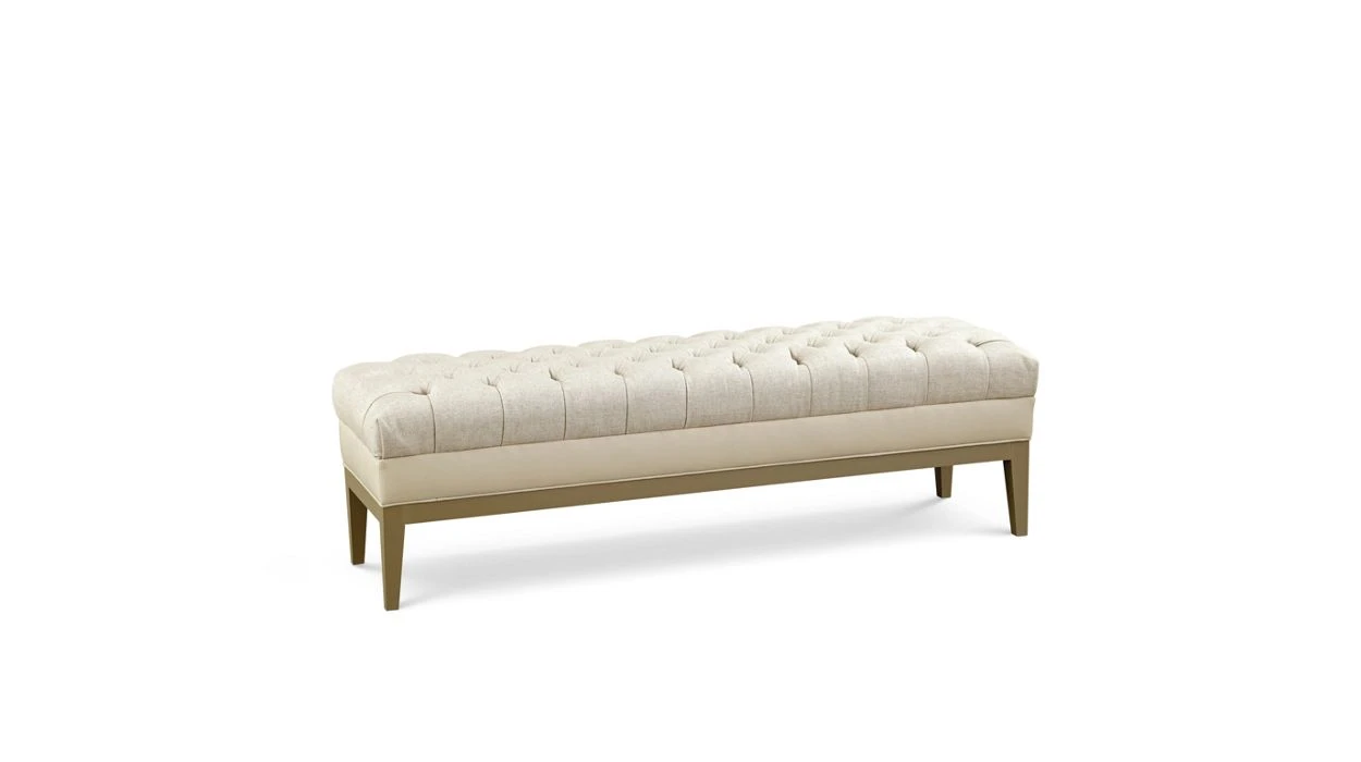 Habillé de cuir Tango, vachette fleur rectifiée, pigmentée et de tissu Saville Linen (61%viscose, 16% polyester, 15% lin, 8% coton). Tête de lit capitonnée, garnie mousse densité 36kg/m3.