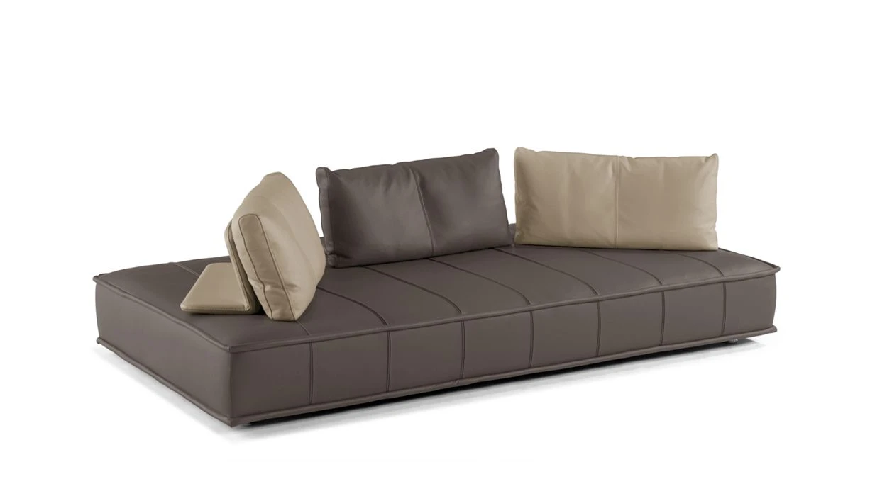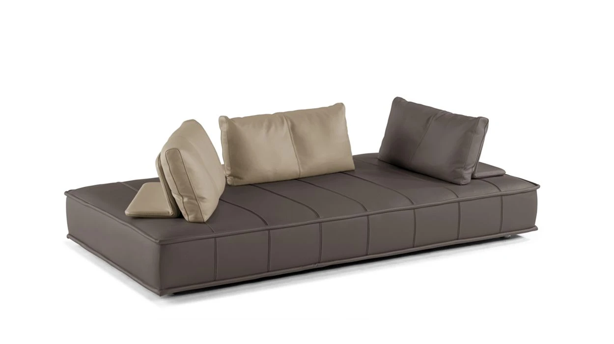 Designed for both indoor or outdoor use, the Escapade is an invitation to laziness. It is infinitely modular, with its fully movable back cushions placed on large platforms, the combination of shapes and the large range of upholstery options – fabric or leather for indoors, specifically selected