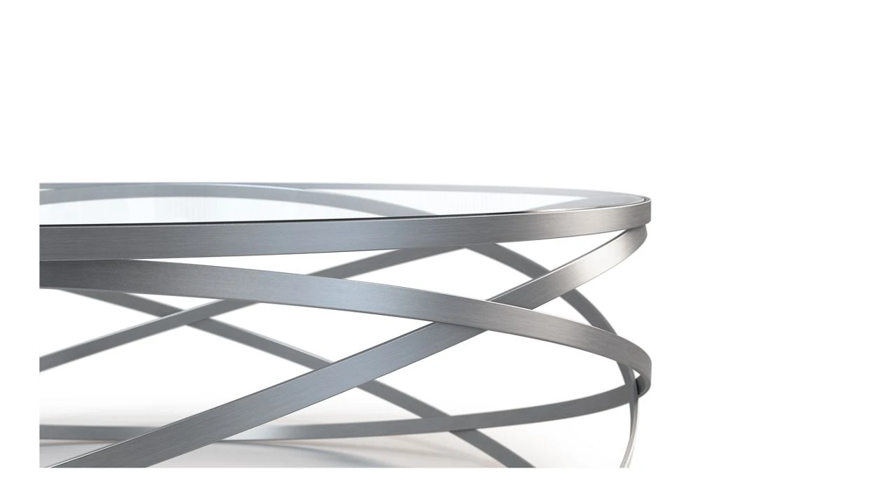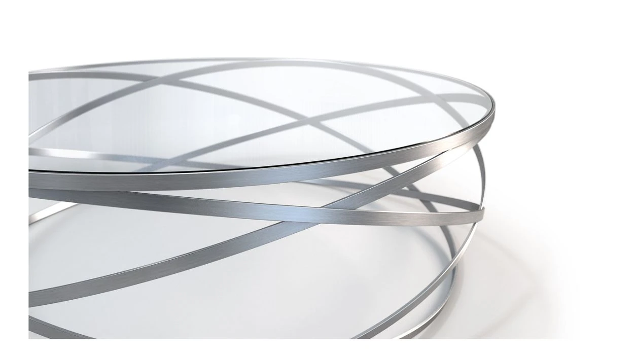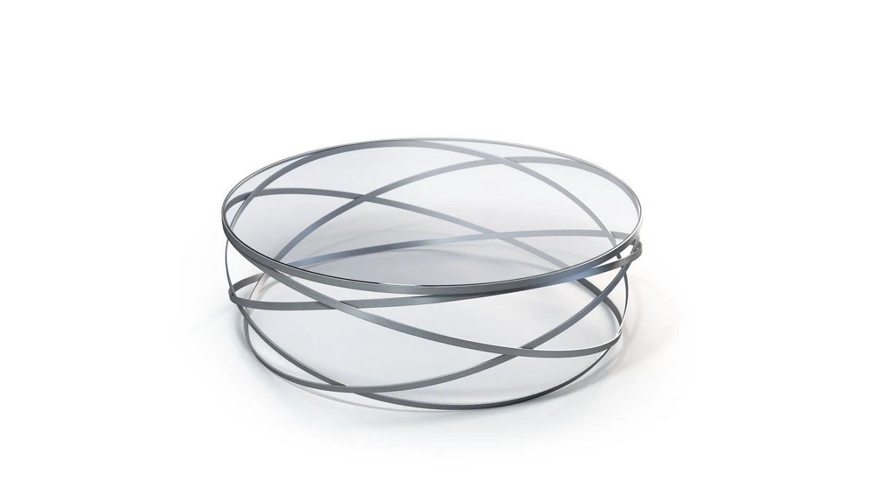 The Evol cocktail table features three intersecting steel circles, like electrons rotating around an invisible core. Designer Cédric Ragot mixed creativity and innovative technical solutions to create this table that evokes both balance and lightness.