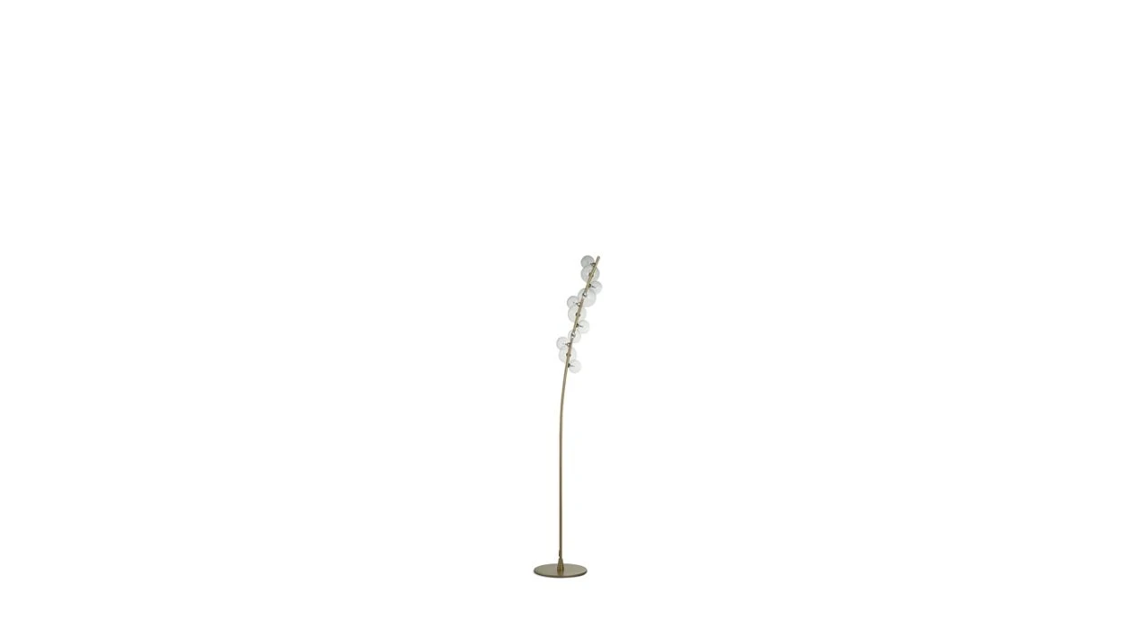 Lampadaire d constitué de onze (11) sphères en verre pyrex soufflé sur une structure en acier inox laqué laiton. Base Ø 35 cm. Fabrication européenne.