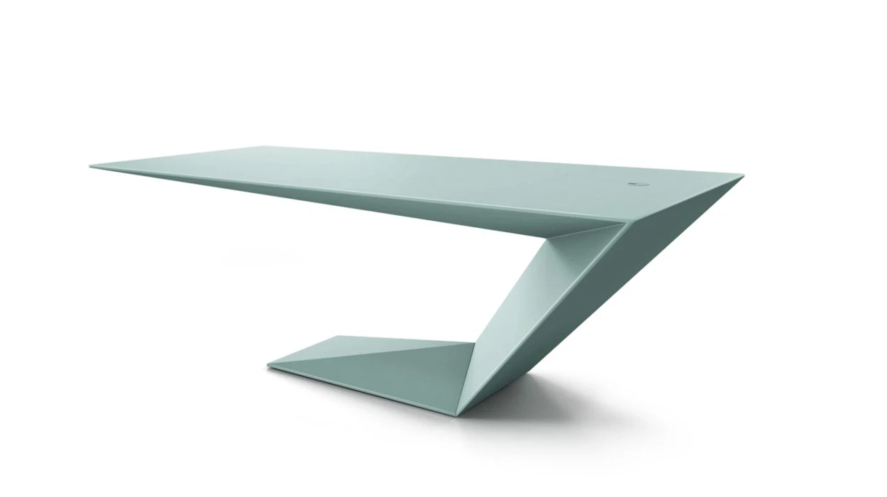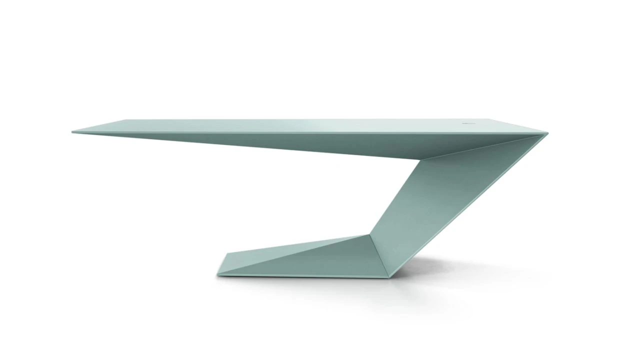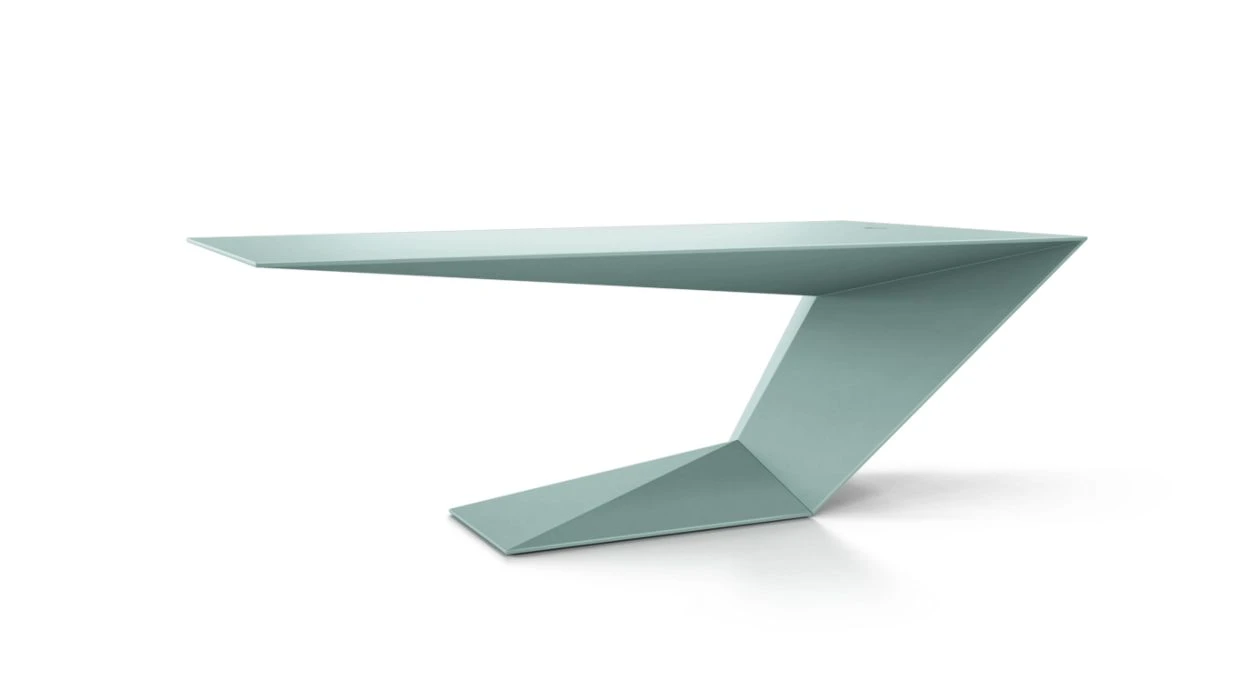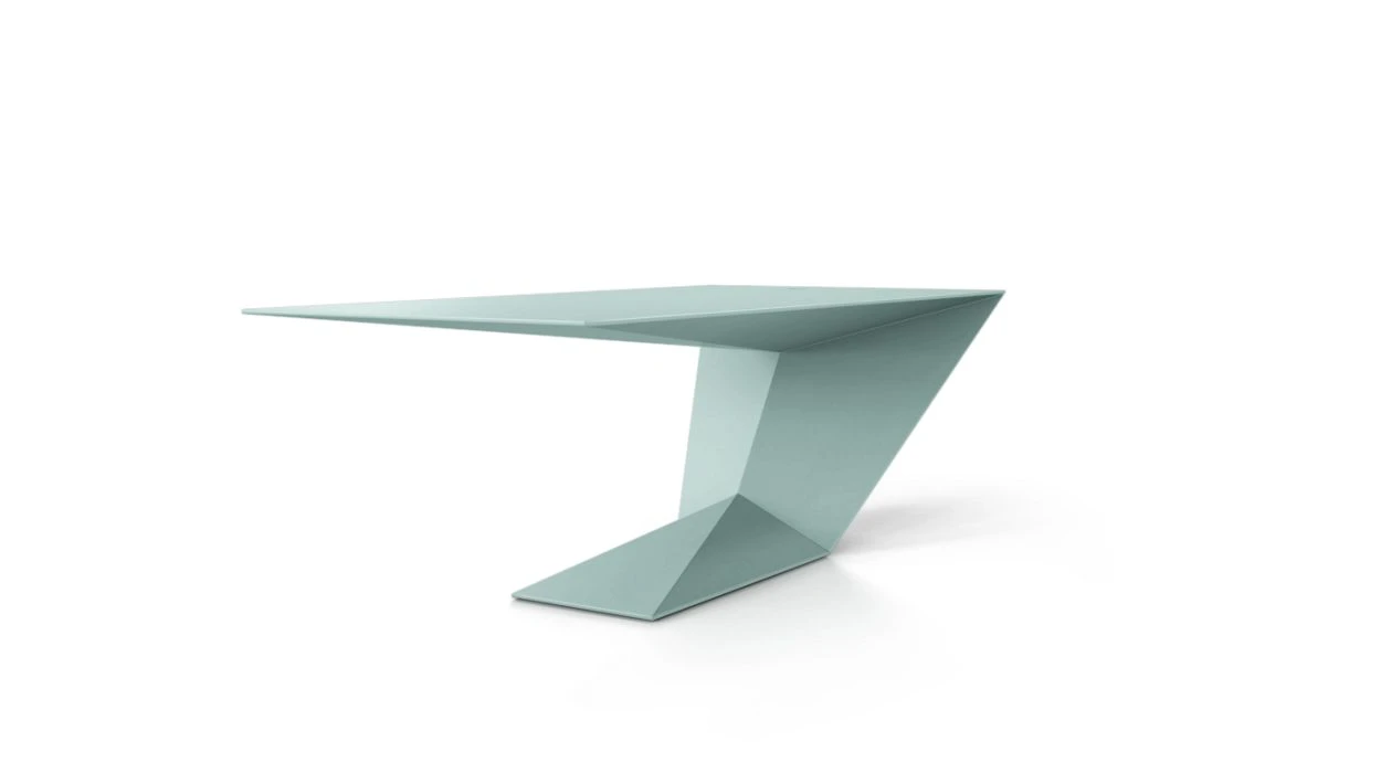 Inspired by the idea of fighter planes escaping from radars, Daniel Rode designed the Furtif to try to escape from the laws of gravity. It features a spectacular overhang and an elegant prismatic base with triangular shapes.