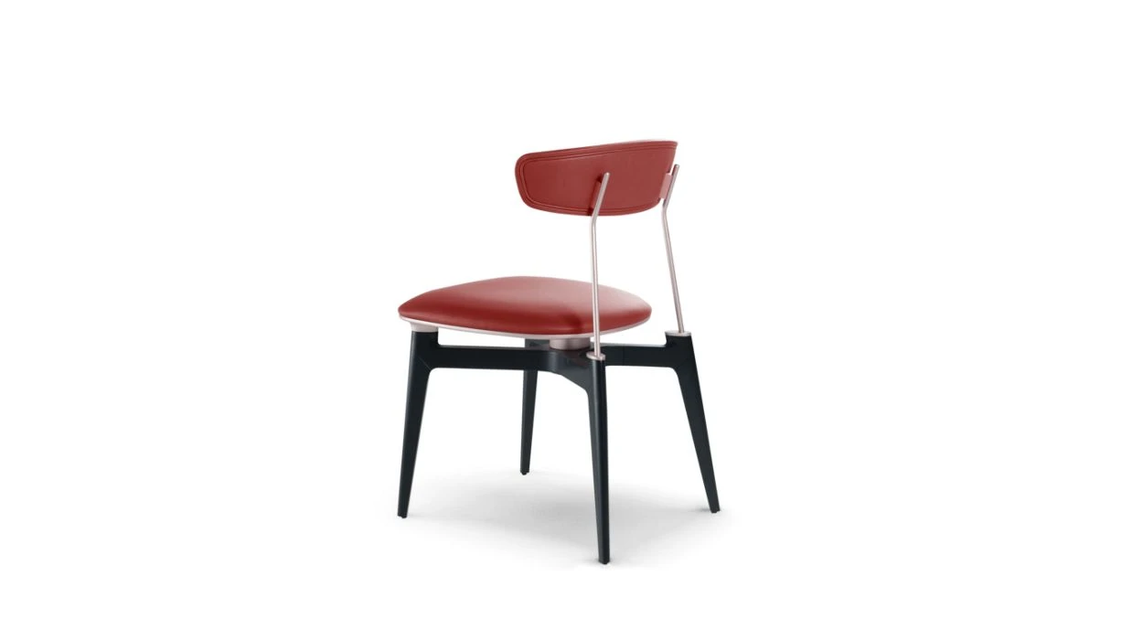 This is how the designer, Xavier DelvallĂ©e, explains his vision of this light and retro-futuristic chair: “With Gaby, the original idea was to make the basic elements of a chair hover weightlessly to recreate an elegant balance between each of them.” Seemingly suspended in thin air, its back is supported by two rods extending from the rear legs. In fabric or leather, the chair’s refined details instil it with timeless class.