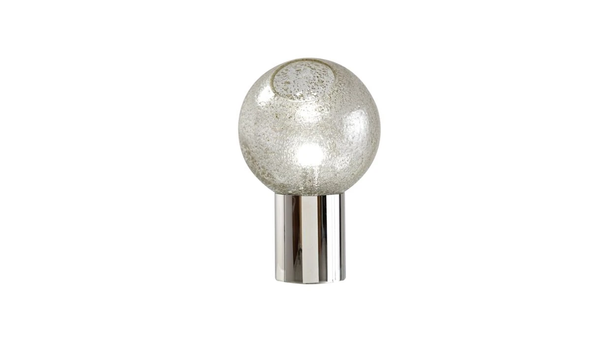 Lamp in polished stainless steel, bubble in transparent glass, col. silver, with antique finish.