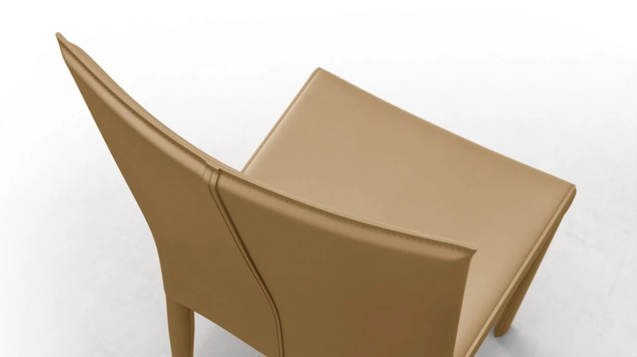 Chair with metal structure upholstered in split leather or Sole fabric (many colours available).