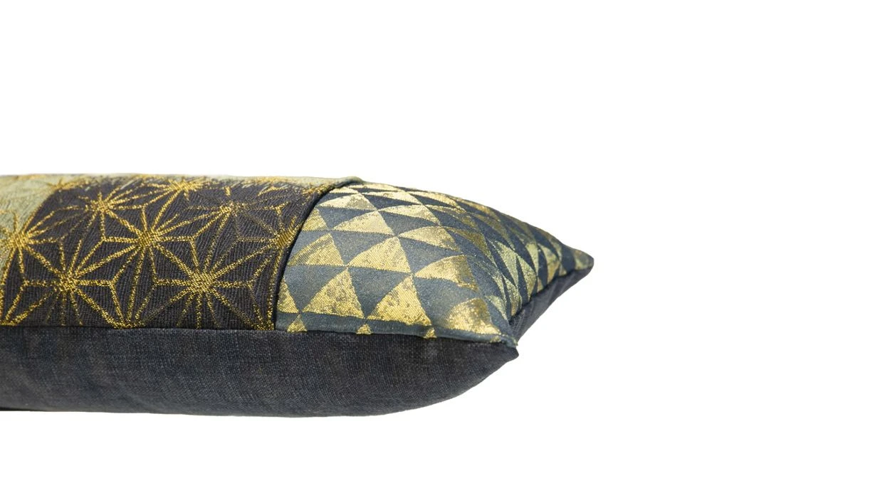 Rectangular cushion in UROKO fabric 150, with ICHIMATSU 150 fabric stripe applied in the centre.