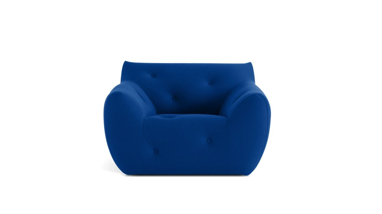 Upholstered in Stretch fabric (65% co, 29% pl, 6% ea). Padded seat in tri-density foam 30-35-25 kg/m³. Padded back and armrests in bi-density foam 30-18 kg/m3. Legs: Solid fir wood. Base: solid beech with stain finish, col. black. Other dimensions and elements available.