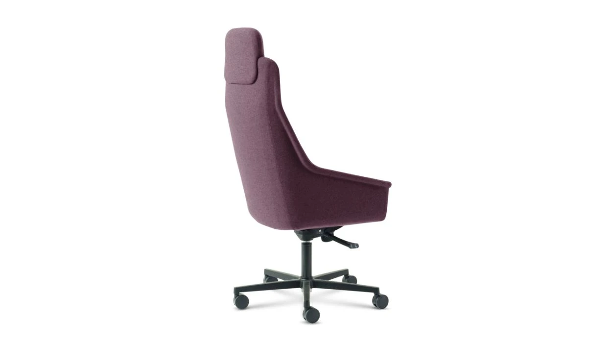 Pivoting, reclining, and height-adjustable, 5-point wheeled base with lacquer finish, col. black.