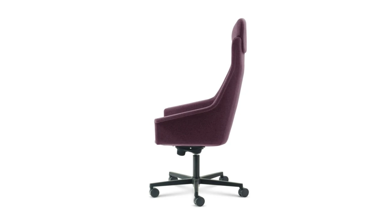 Shell in HR cold foam 65 kg/m3. Headrest, lumbar cushion, and seat cushion in HR polyurethane foam 65 kg/m3.
