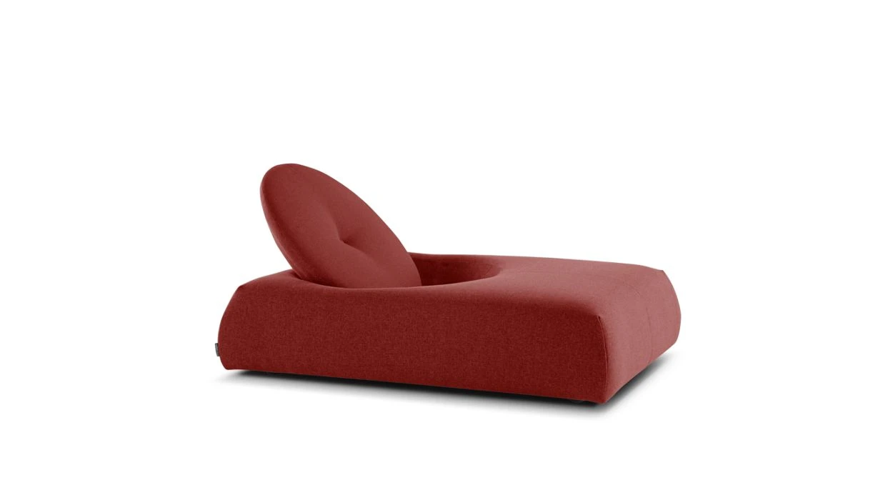 Designer Stefan Heiliger focuses on creating comfortable pieces with calculated designs. Most of the seating he designs is characterised by organic shapes and versatility. Here we have an adjustable round back cushion inserted into the seat cushion: depending on the inclination and position, it becomes an armchair, meridienne, or lounge chair.