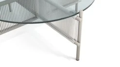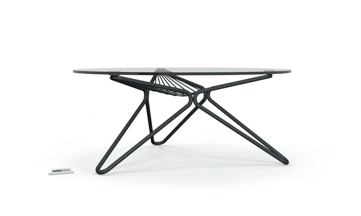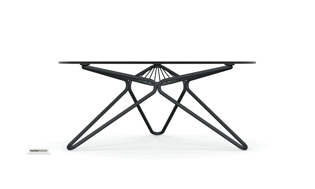 Tube structure in steel, epoxy lacquer finish (different colours available), with top in 12 mm-thick natural glass.