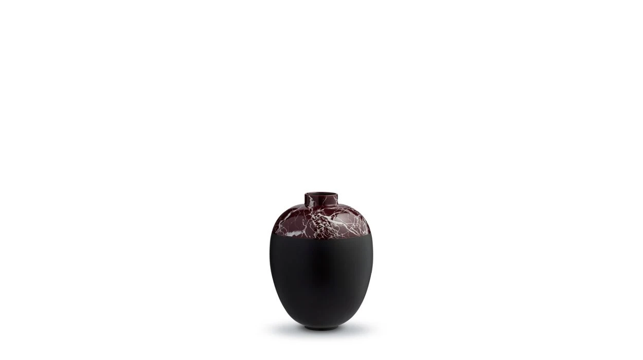 Vase in red clay, turned, glazed and decorated by hand. Transparent enamel finish for the upper part. Matte enamel for the lower part.