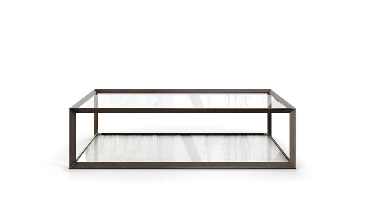 Designed by Luigi Gorgoni, the Metallica collection is elegant and sober. Its unique feature is how the shape is outlined by the steel frame; each piece angled at 45°. These steel pieces seem to cradle the glass tray. What’s the secret to its perfect assembly? The three-point zamak clips that are used in the joints.