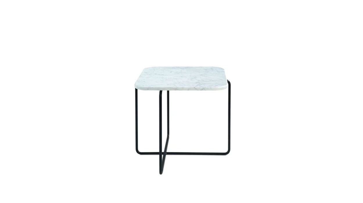 Square cocktail table with top in marble (4 finishes) or in walnut and tubular structure in steel with lacquer finish col. brass or black.