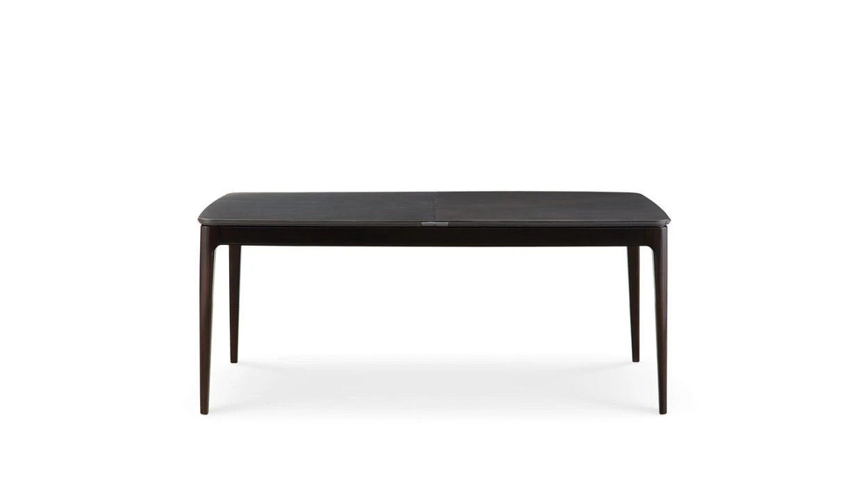 1 Extension leaf (80 cm). Structure and base in solid cherry wood. Top in cherry wood veneer on engineered composite wood and frame in solid cherry wood. Extension leaf in cherry wood veneer on engineered composite wood, and frame in solid cherry wood. Rod in over-stitched leather.