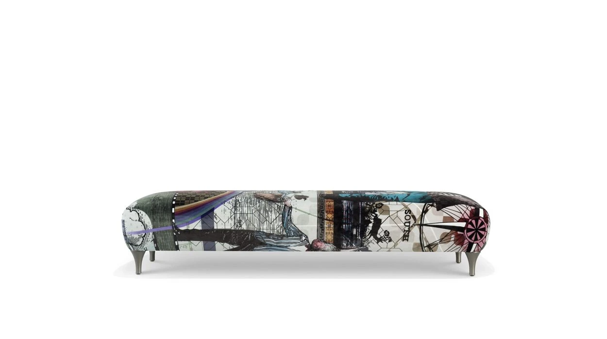 Ottoman from the Globe Trotter collection, available in several sizes and in the different fabrics from the fresco imagined by Marcel Wanders.