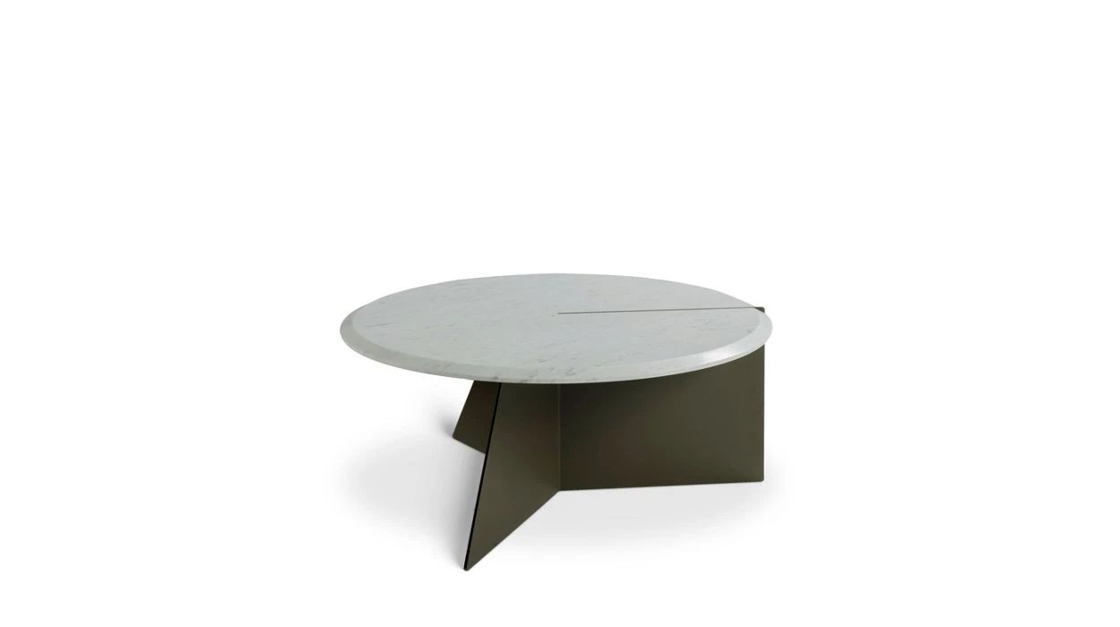 Simple and round, the three dimensional design of the Nenuphar collection creates a micro-landscape in front of your sofa. One of the three elements of the tripod base is flush with the surface of the marble top, highlighting the beveled edge.