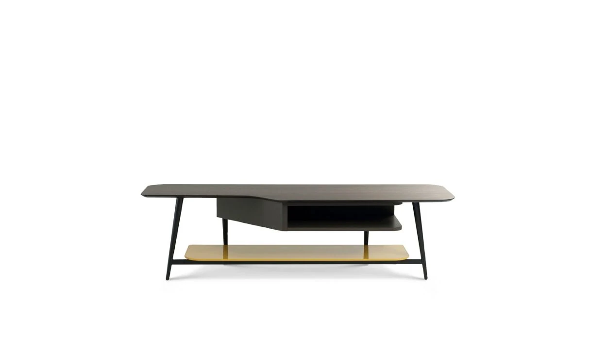 Middle and inferior trays in lacquered glass, shelf in lacquered glass and top (7 finishes). Base in lacquered metal, col. black.