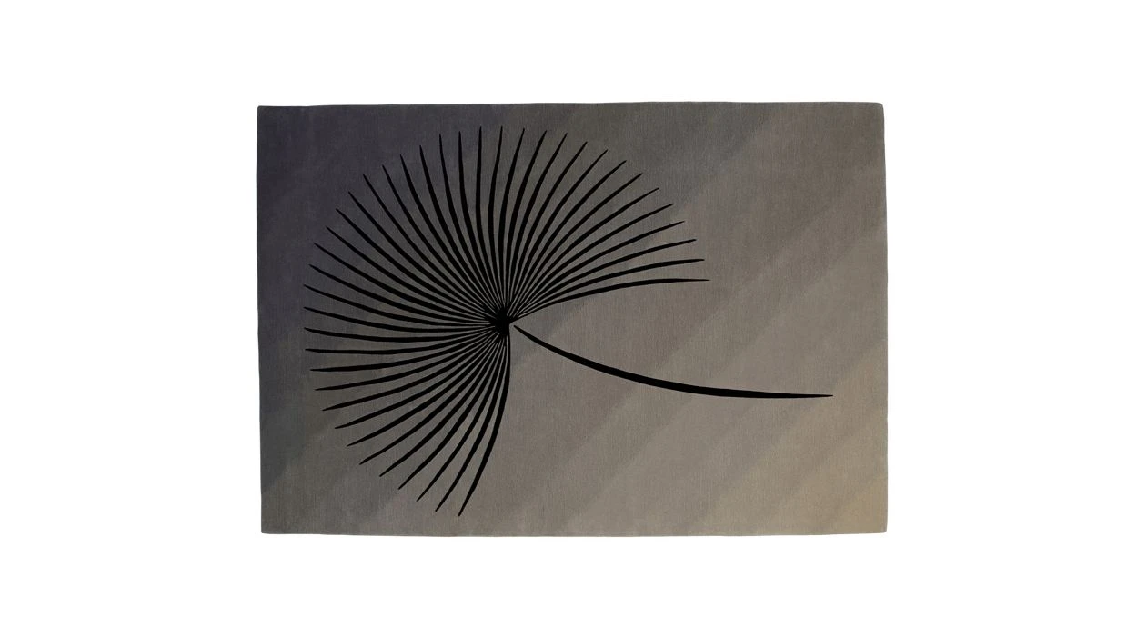 Hand-tufted rug in 60% New-Zealand wool and 40% in vegetal silk. Large black palm pattern on a gradient color background. Hand chiseled pattern.