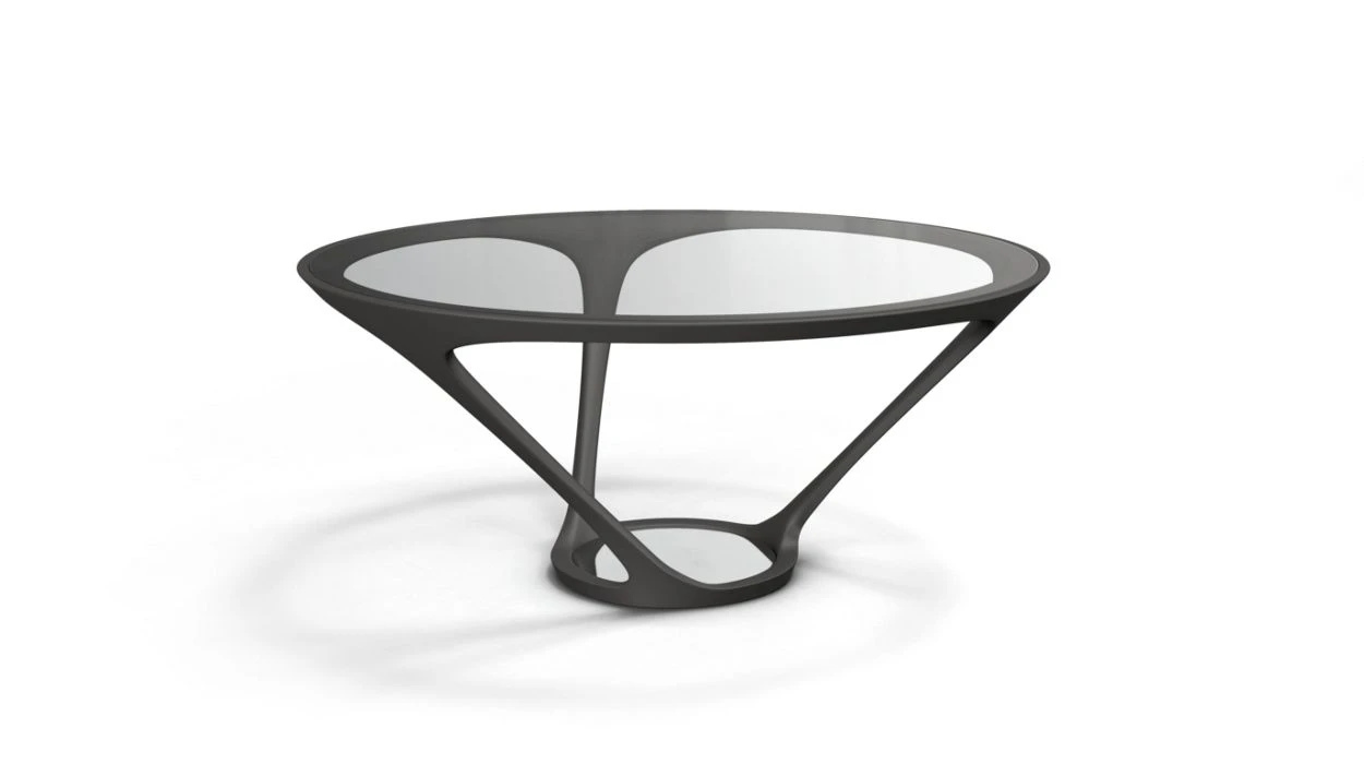 The table evokes the world of plants, from which it derives its majestic command of the space. Reminiscent of a hanging vine, its structure offers a different shape depending on the viewer’s standpoint.