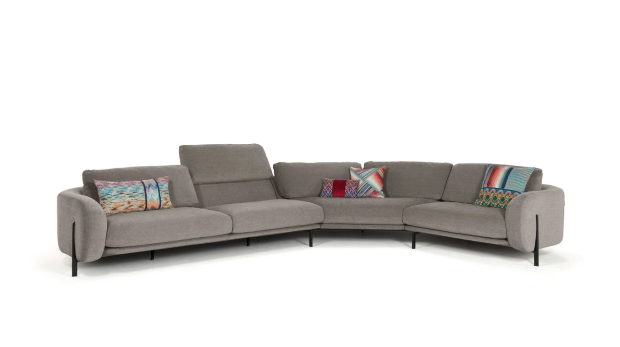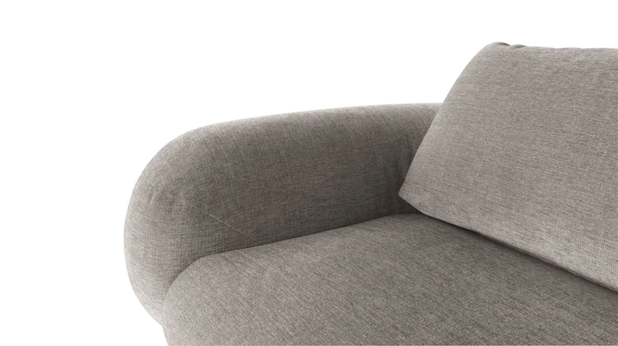 Upholstered in Moorea fabric (100% acrylic). Adjustable backs, cast aluminum mechanism, matte black lacquer finish. Seat cushions in tri-density foam 25-35-37 kg/m³. Back cushions in foam 21 kg/m³ and microfiber flakes. Structure in solid pine wood, fir plywood and metal. XL HE elastic straps suspension. Metal base in matte black varnish finish.
