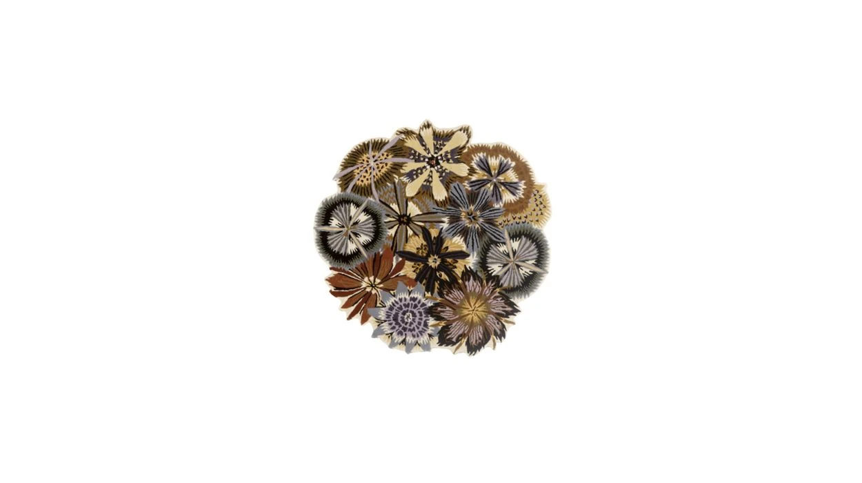 Hand tufted composed of many different flowers. chiseled edge. 100% New Zealand wool.