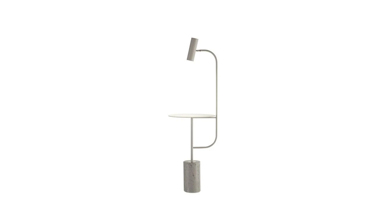 Floor lamp with marble base and structure in lacquered steel. Diffuser in lacquered aluminum.