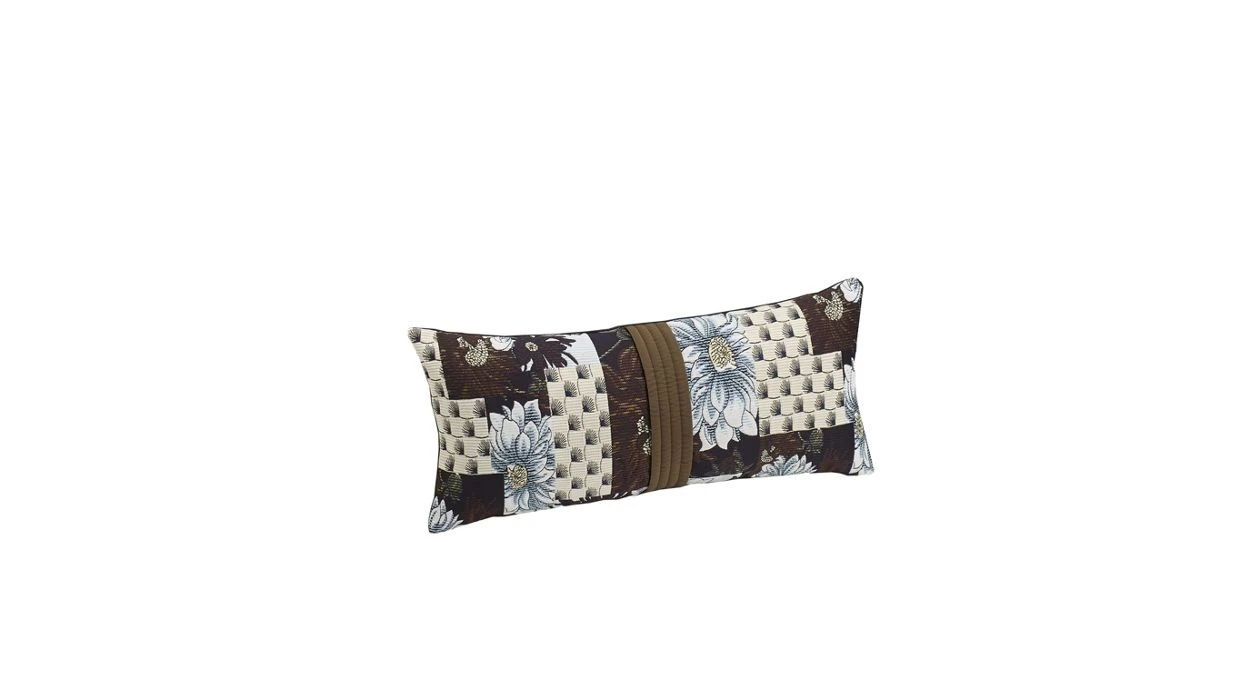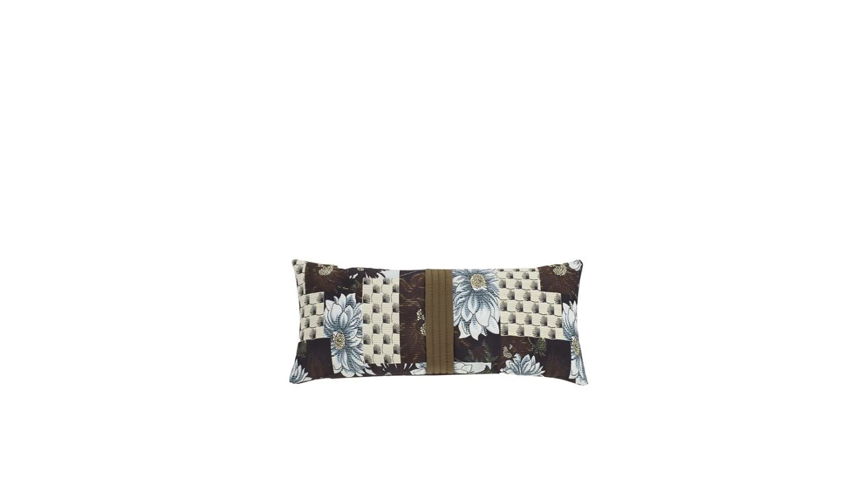 Rectangular cushion in jacquard fabric Patchi-Daria 150 with central stripe imitating a belt (80% polyester, 20% cotton). Back in fabric Koko Turkeses (54% polyester, 46% viscose). Inside in 100% polyester. Interior filling included. Removable cover.