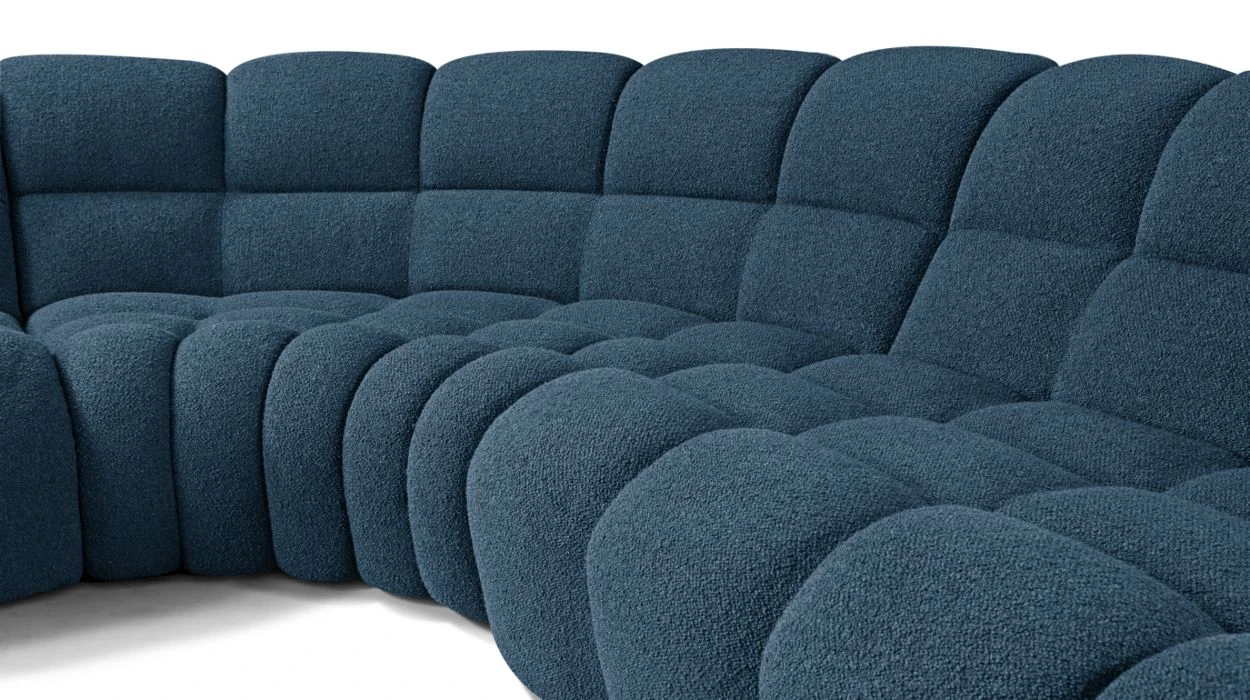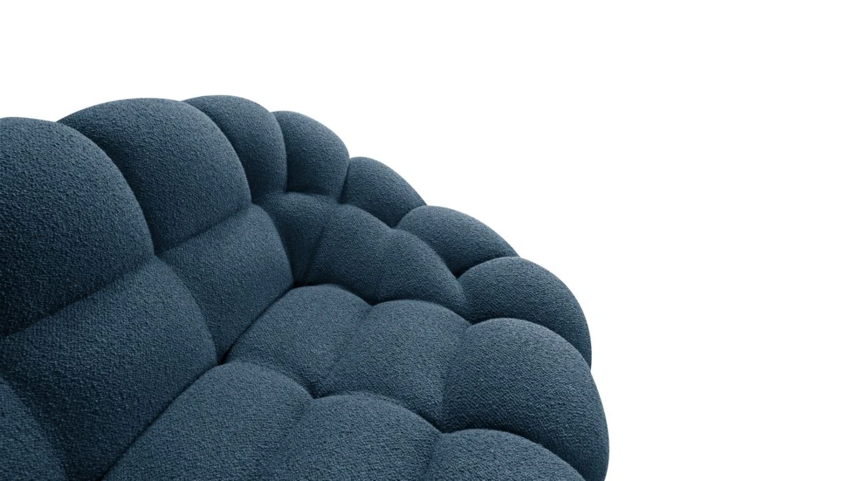 Upholstered in Orsetto Flex fabric (33% viscose, 29% acrylic, 15% wool, 8% cotton, 7% polyester, 6% linen, 1% polyamide, 1% elasthanne). Padded seat cushion, bi-density foam 35soft-23 kg/m³. Padded back cushion in bi-density foam 35soft-23 kg/m³. Structure in solid fir wood, pine plywood and engineered composite wood. HR elastic straps suspension. Base in solid beech with varnish finish Wengé stain. Other dimensions and elements available.