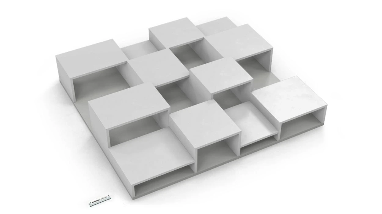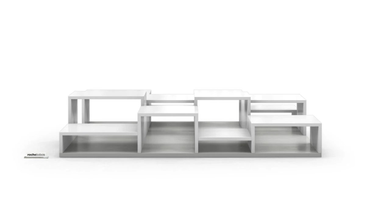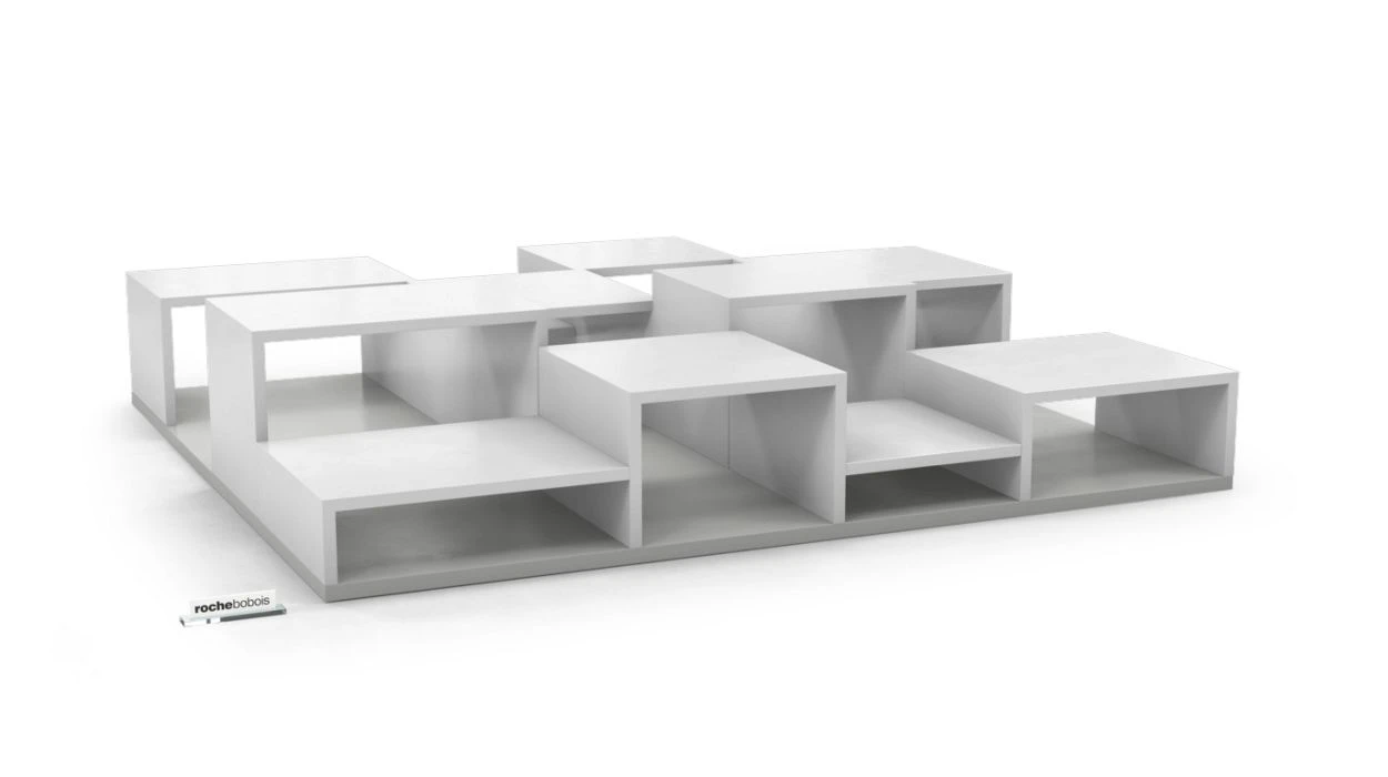 Cocktail table with many niches of varying depths, matte lacquer finish (many colours available).