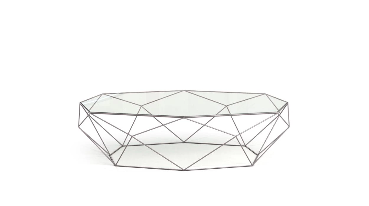 Cocktail table in steel wire, diameter: 6mm (0.2″) with epoxy lacquer finish. Top in 6mm-thick tempered glass. Also available in other dimensions and finishes.