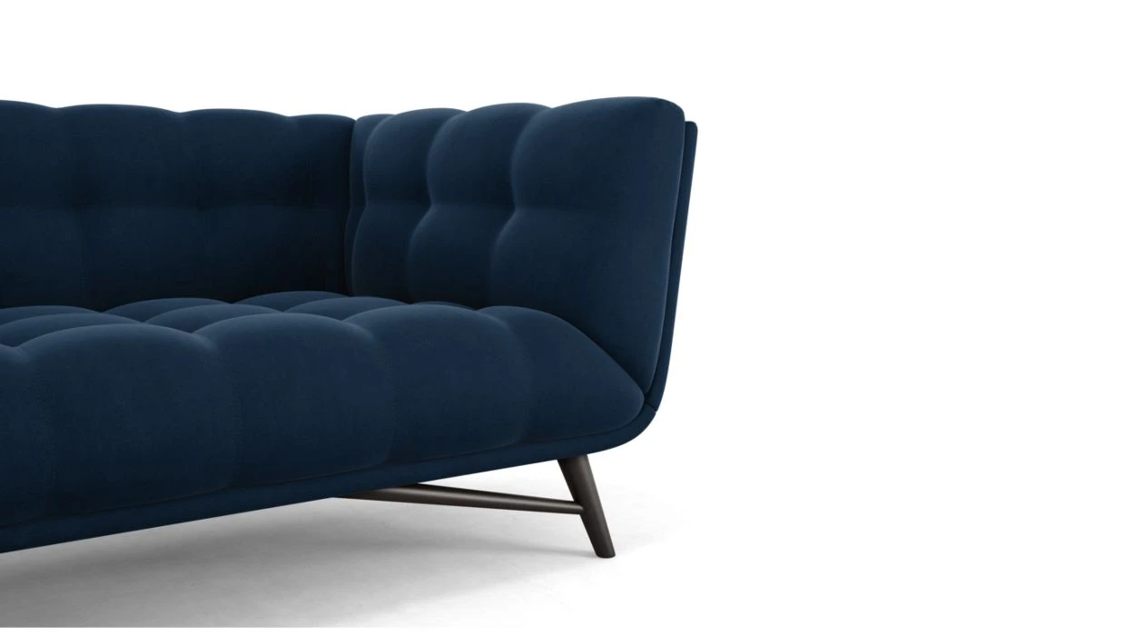 Profile is a timeless model designed by Roberto Tapinassi & Maurizio Manzoni. It combines a 1950s inspired shape with a very contemporary base. The velvet upholstery is fully tufted and available in a wide range of colours. It is available in many dimensions of sofas, ottomans, and chairs.